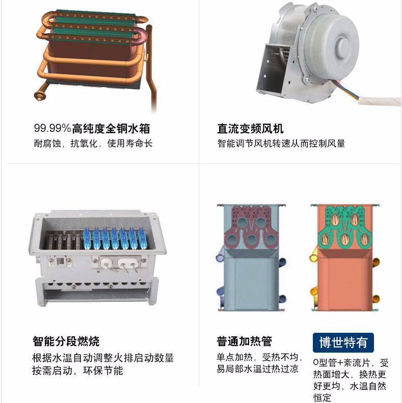 純銅水箱 直流變頻風(fēng)機(jī) 智能分段燃燒 O型加熱管